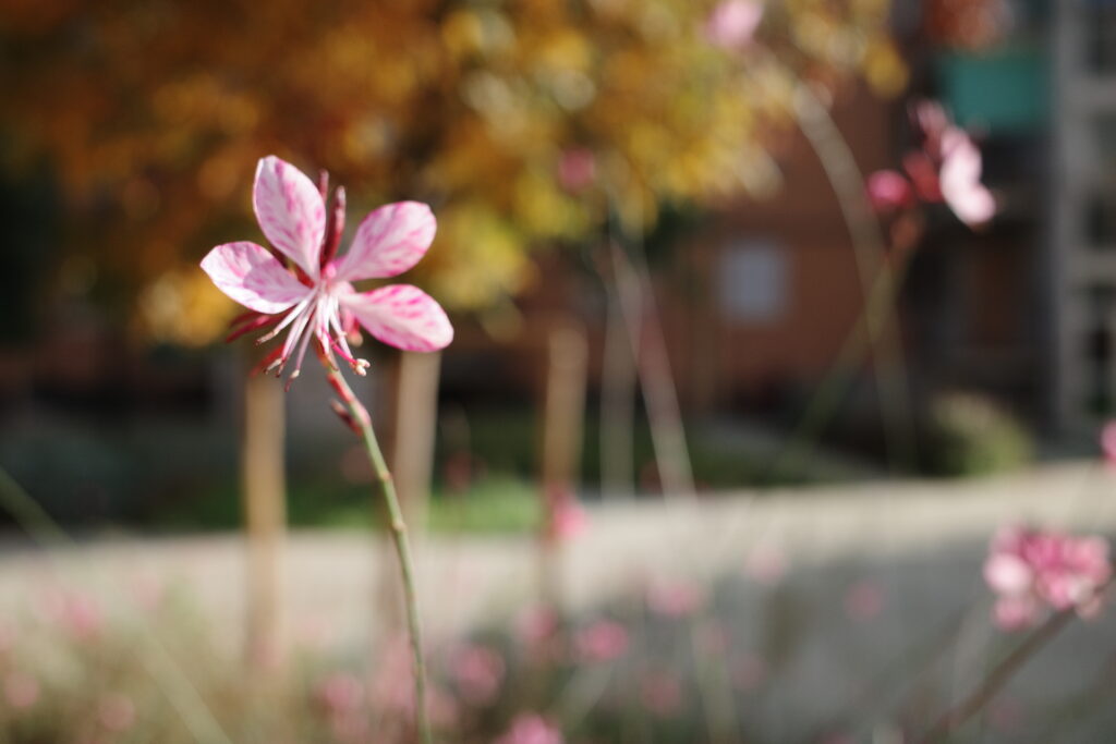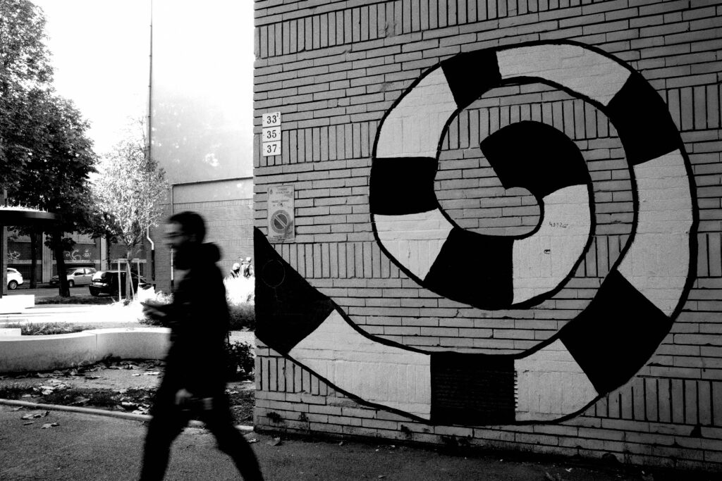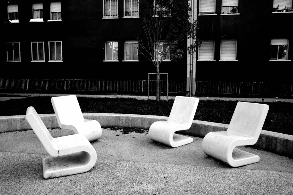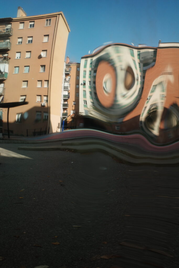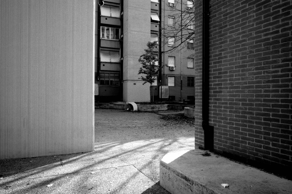 Per chi si addentra in questo quartiere è difficile non percepire il forte contrasto tra la brutale imponenza dell’architettura, con i suoi pilastri in cemento armato, e la fragilità di una natura non più selvaggia ma addomesticata in piccole e uniformi aiuole.